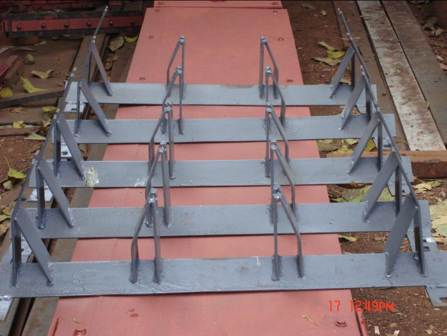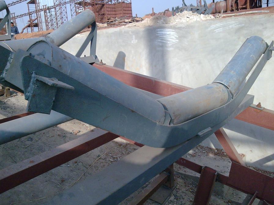 Angle base provides strength, and directs spillage away from rollers thus preventing accumulation of material under roller, ensuring free running of roller without any power loss.